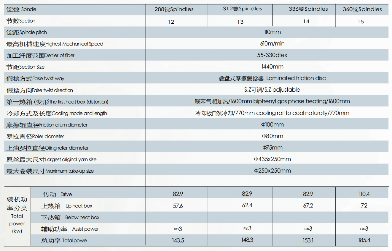 【設(shè)備用途Equipment use】 該機(jī)主要是將POY原絲(聚酯預(yù)取向絲),通過(guò)拉伸和假捻變形加工成具有低彈性能的假捻變形絲(DTY滌綸彈力絲),加工時(shí)在每個(gè)錠位將S捻和Z捻的雙絲合股直接一步加工...